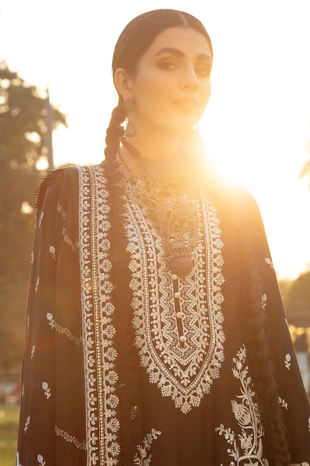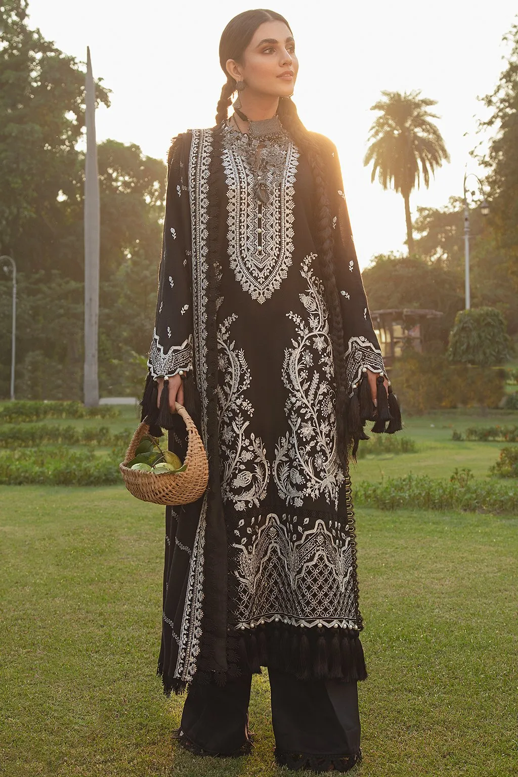 Fabric: Embroidered Linen Front (1 Meter) Plain Linen Back (1 Meter) Embroidered Sleeves (0.66 Meter) Embroidered Organza FRONT Border (1 Meters) Embroidered Organza BACK Borders (1 Meters) Embroidered Organza Sleeves Border (1 Meters) Embroidered wool DUPATTA (2.5 yards) Linen Trousers (1.75 Yards) Color: Black |