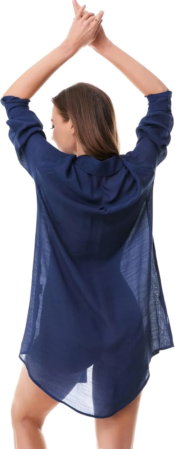Beachwear Bathing Suit Womens Cover Ups Swimwear Sheer Button Down Shirt