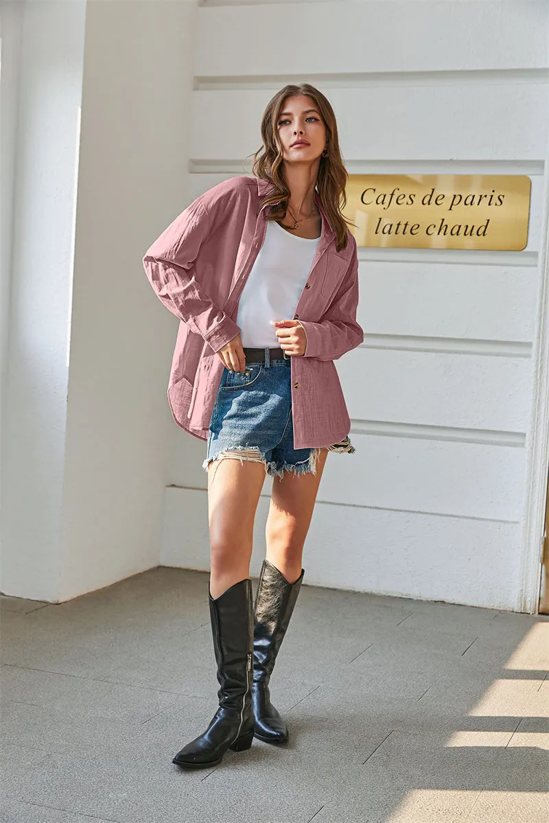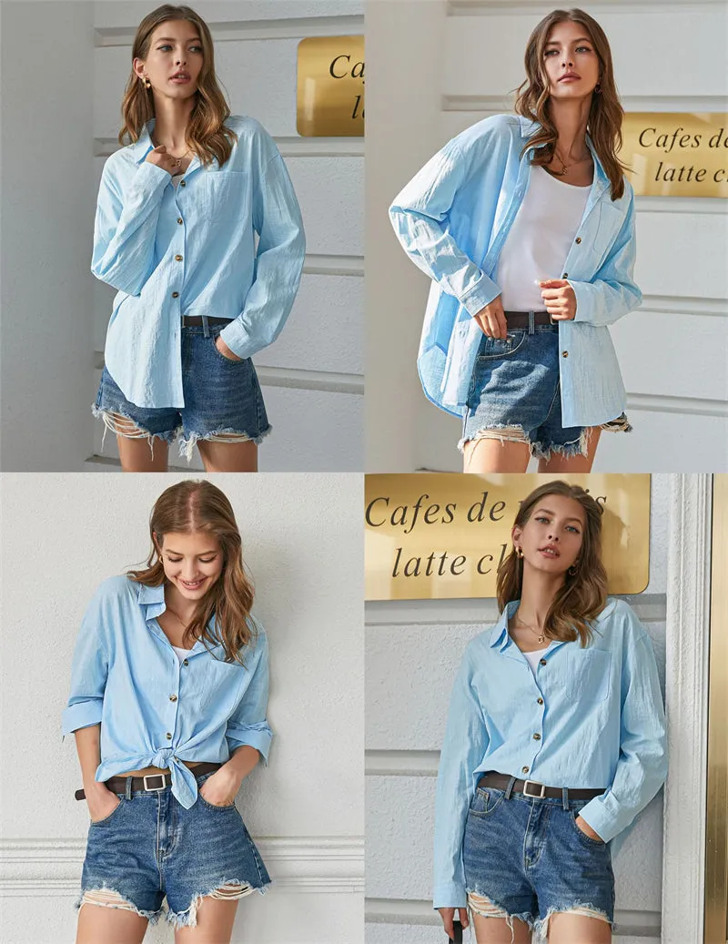 - Feature: Color block /solid color linen shirts, cotton tops with bust pocket, front button closures, long sleeves gauze shirts, wear as 3/4 sleeves or full sleeve, classic collar blouse, oversized button down shirts.