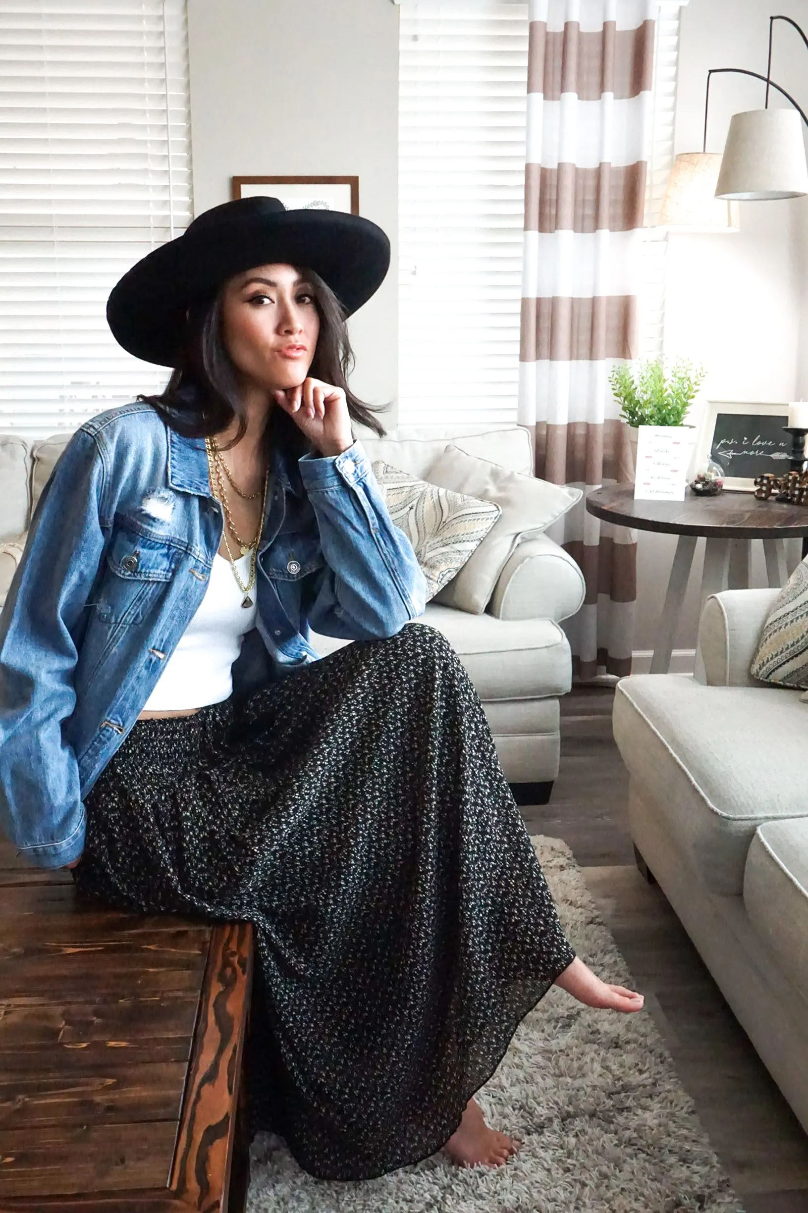 Stay cool and stylish with our CRINKLE FABRIC FLORAL PRINT SMOCKED MIDI SKIRT. Made with lightweight and breathable crinkle chiffon fabric, this midi skirt is perfect for warm weather. The smocked waistband, drawstring tassel ties, and full lining provide a comfortable and flattering fit. Perfect for pairing with crop tops or tanks for a trendy summer look.