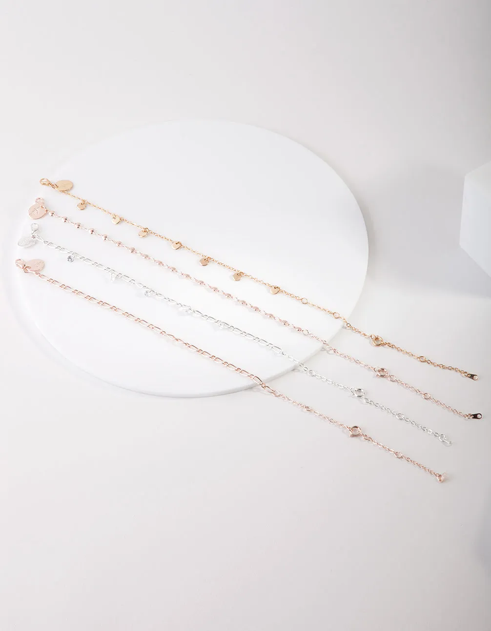 Add some extra style to your look with anklets and bracelets. This pack comes with mixed metal anklets/bracelets embellished with cubic zirconia stones.