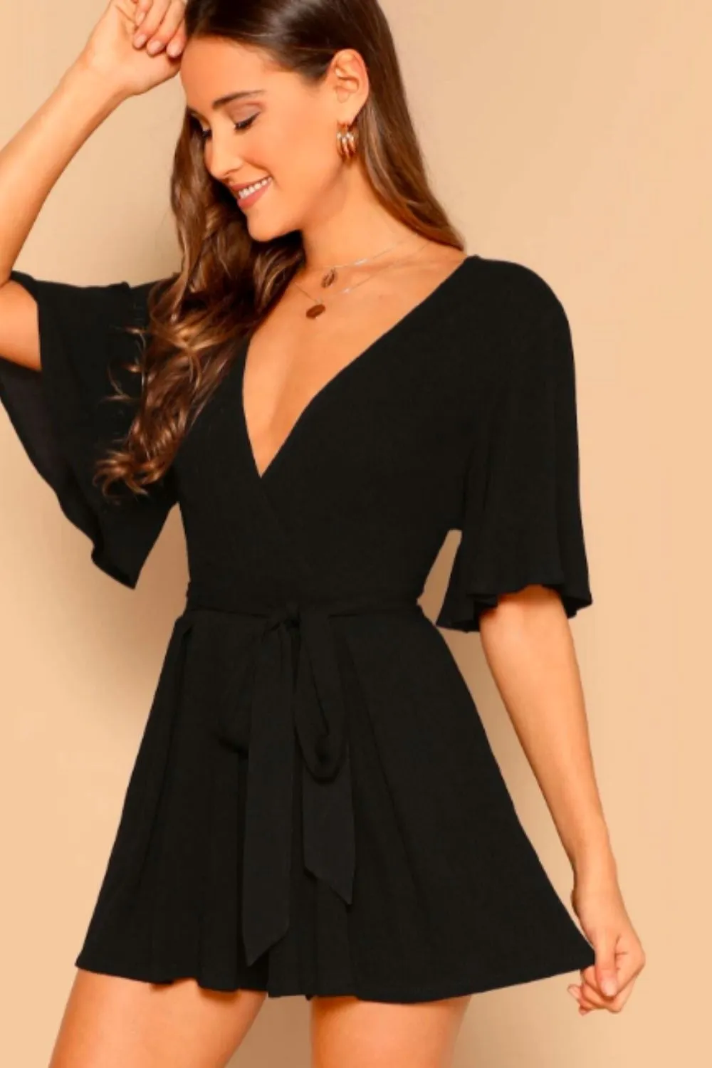 Type- Deep V Neck Flutter Sleeve Belted Playsuit