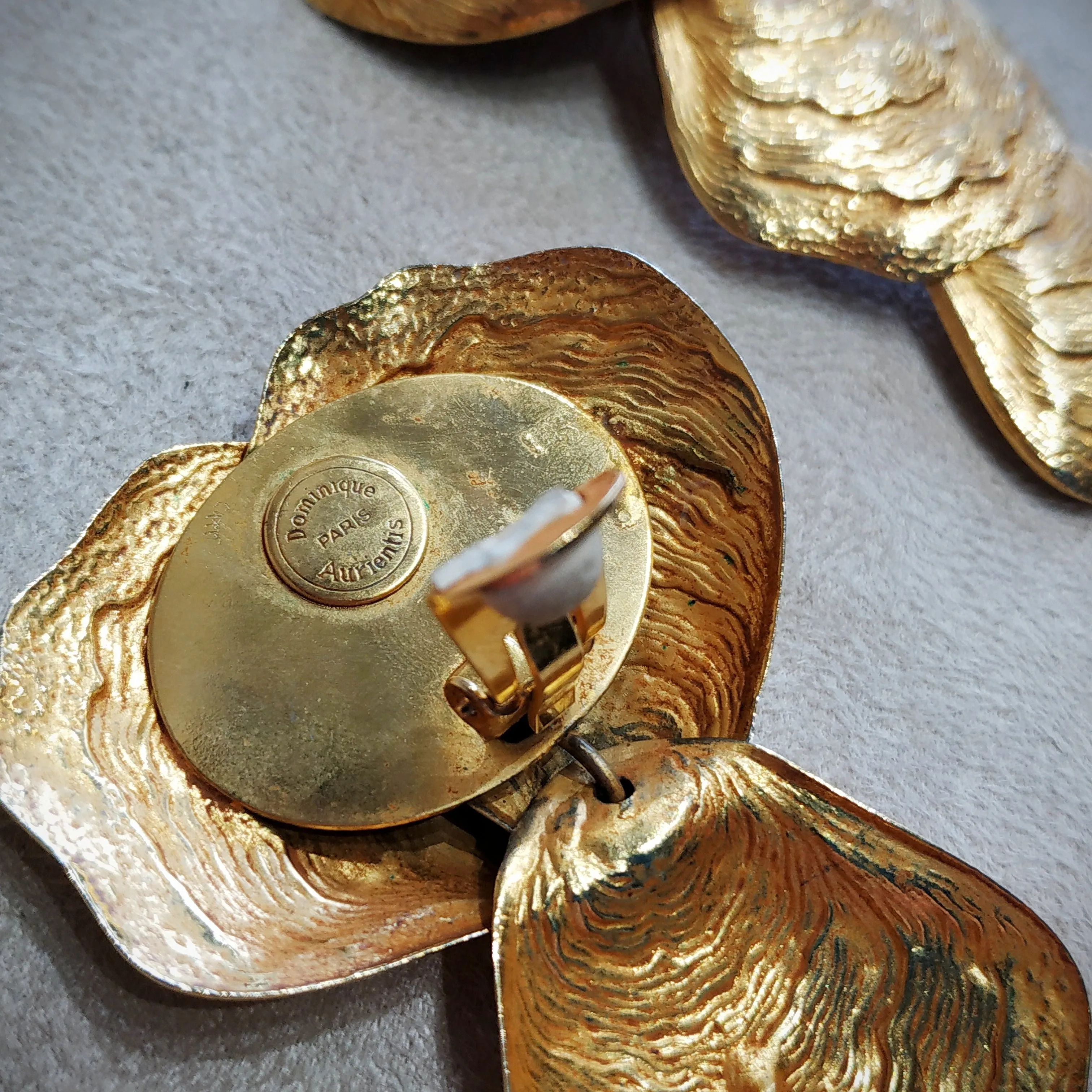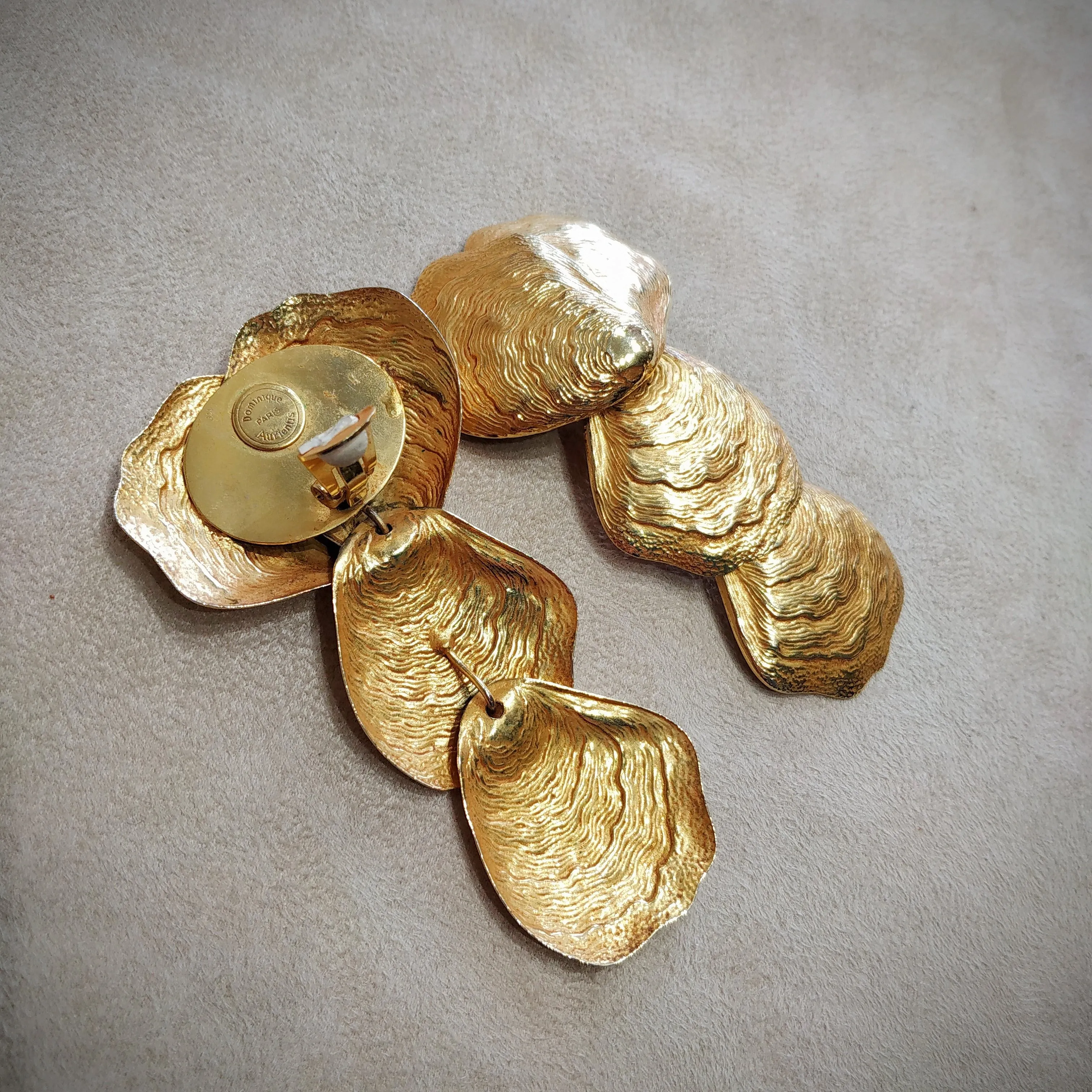 Bold statement Shell clip on earrings by Dominique Aurientis. High quality Gold plated brass stampings.