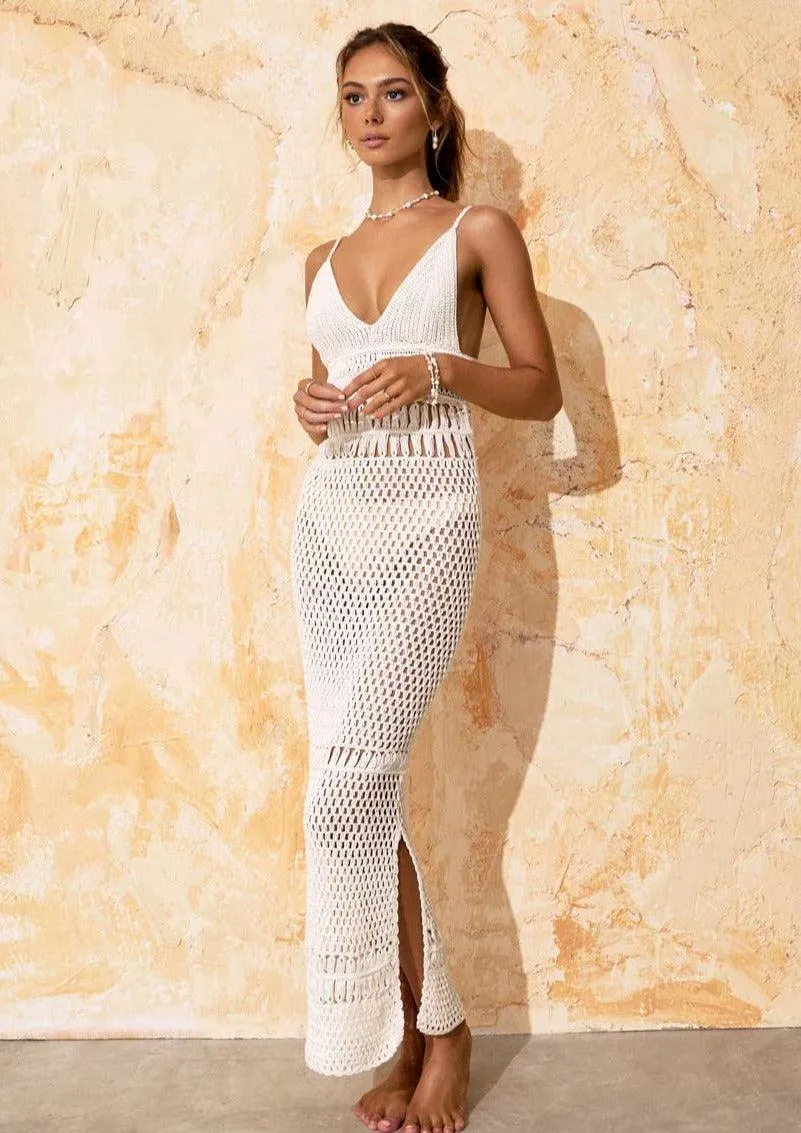 This intricately crocheted piece will give way to your inner-siren, complete with plunging back and cami-style straps.