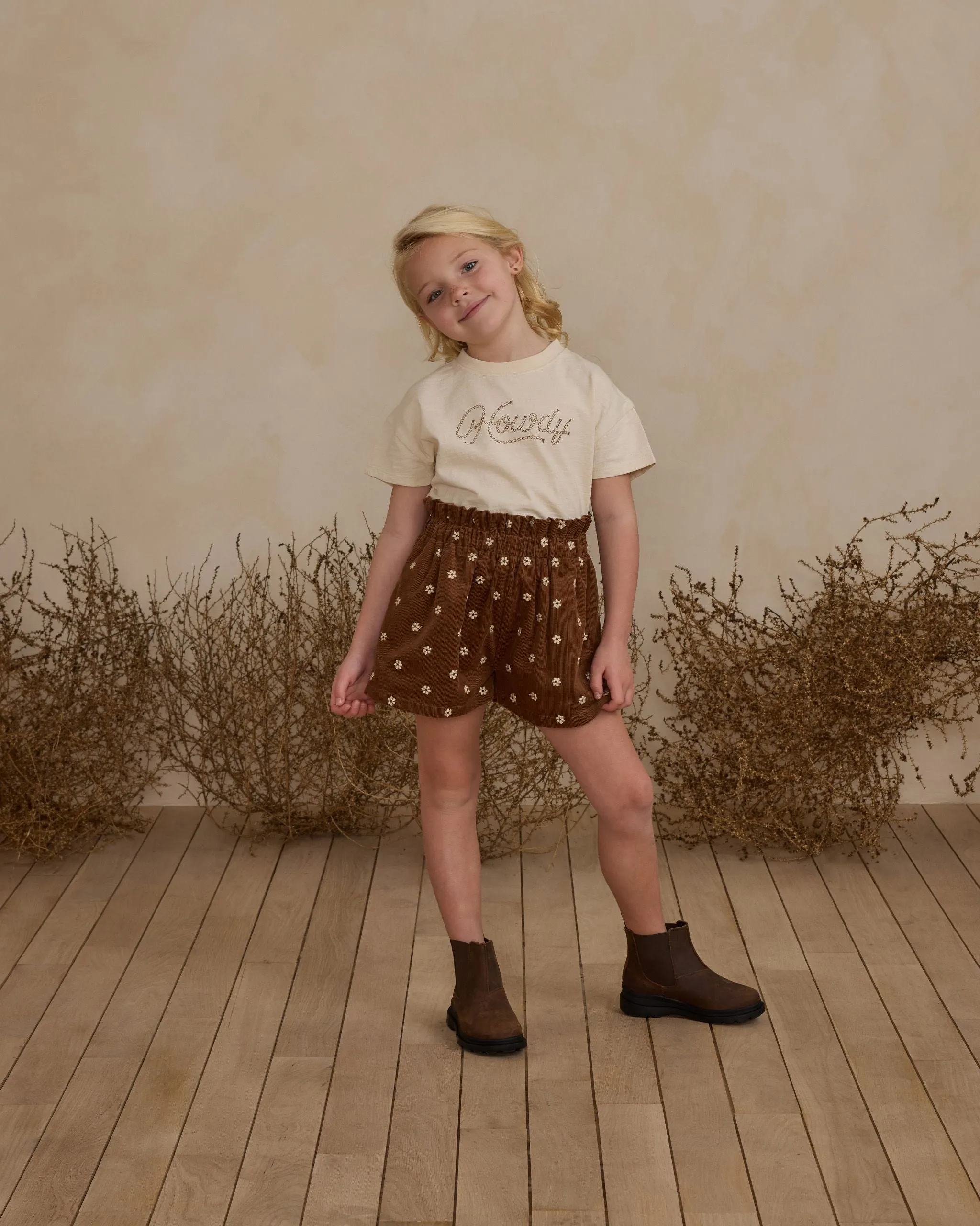 Our Paperbag Shorts are a Fall staple with their comfortable fit, elastic waist, and adorable pattern. Paired perfectly with one of our Scalloped Tees!