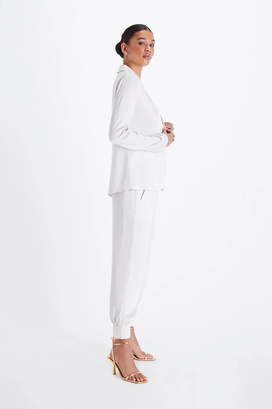 A signature piece in the Neu Nomads collection now available in the perfect snow white shade. Released as part of our Wedding Collection, this soft suiting jacket is actually perfect for all occasions. From a summer beach party, to a cocktail in the city and your wedding - why not? we love to pair it with the Allie Ankle Pants or the Carina Palazzo Pants for a stylish monochrome look. Made in our luxuriously soft, lightweight and eco-friendly TENCEL™, this style features a hidden snap button closure, and side slit pockets. 100% Vegan.