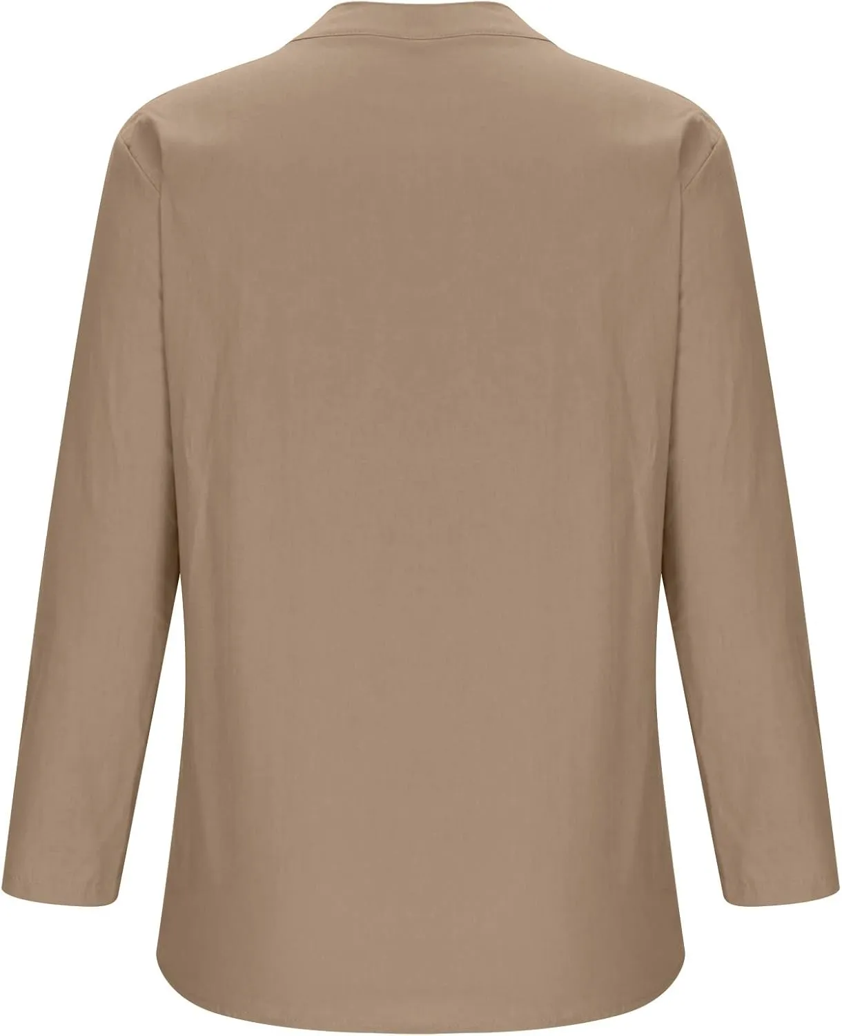 Women's button down shirts are made of 60% cotton, 40% linen fabric for a soft feel. Oversized cotton linen shirt, elastic, soft material, comfortable to wear.