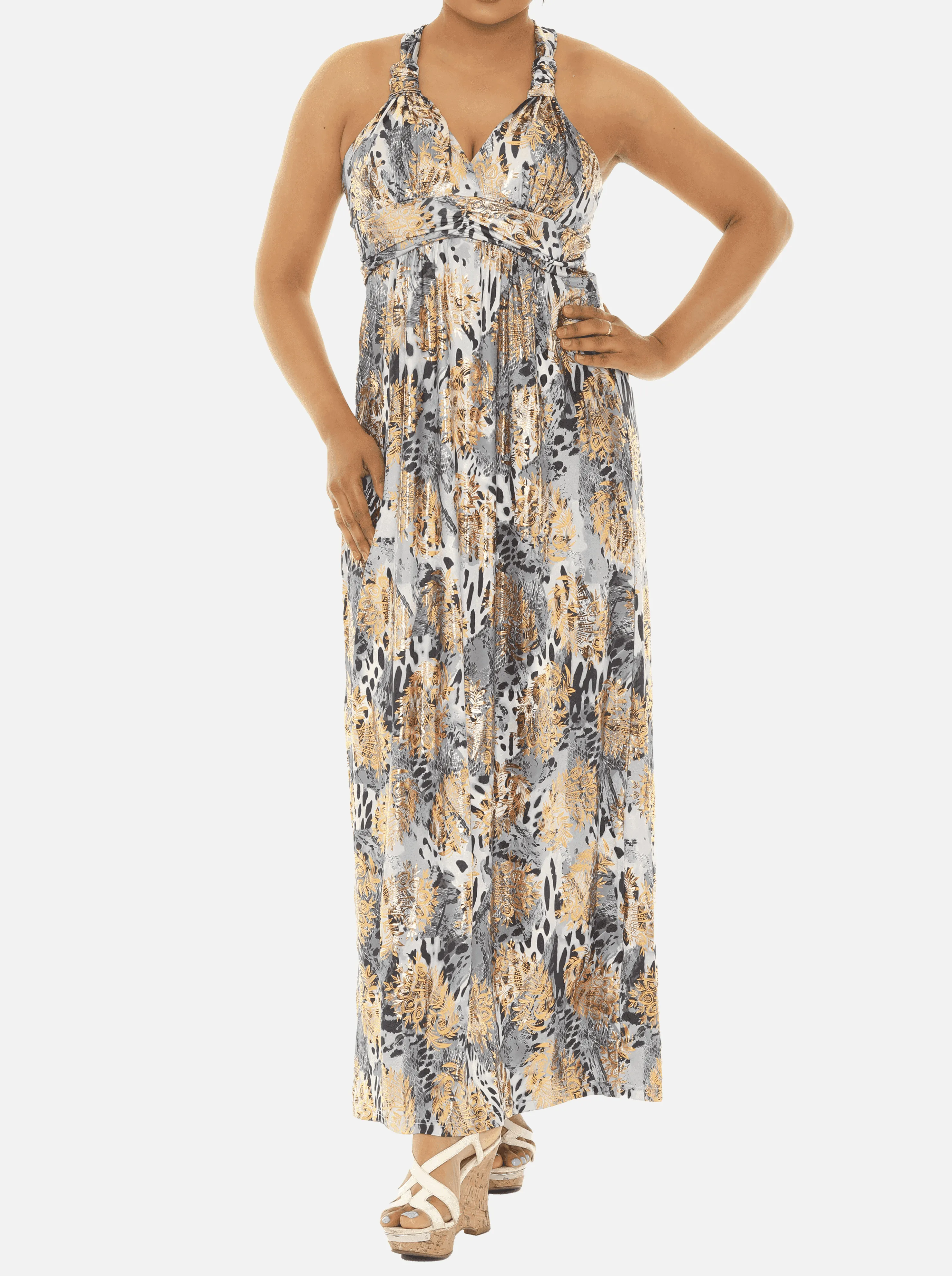 The halter neck design showcases your shoulders and adds a touch of allure to your ensemble. It offers a flattering silhouette, accentuating your figure in all the right places. The flowing maxi length creates a graceful movement with every step you take, enhancing your presence and exuding an air of sophistication.