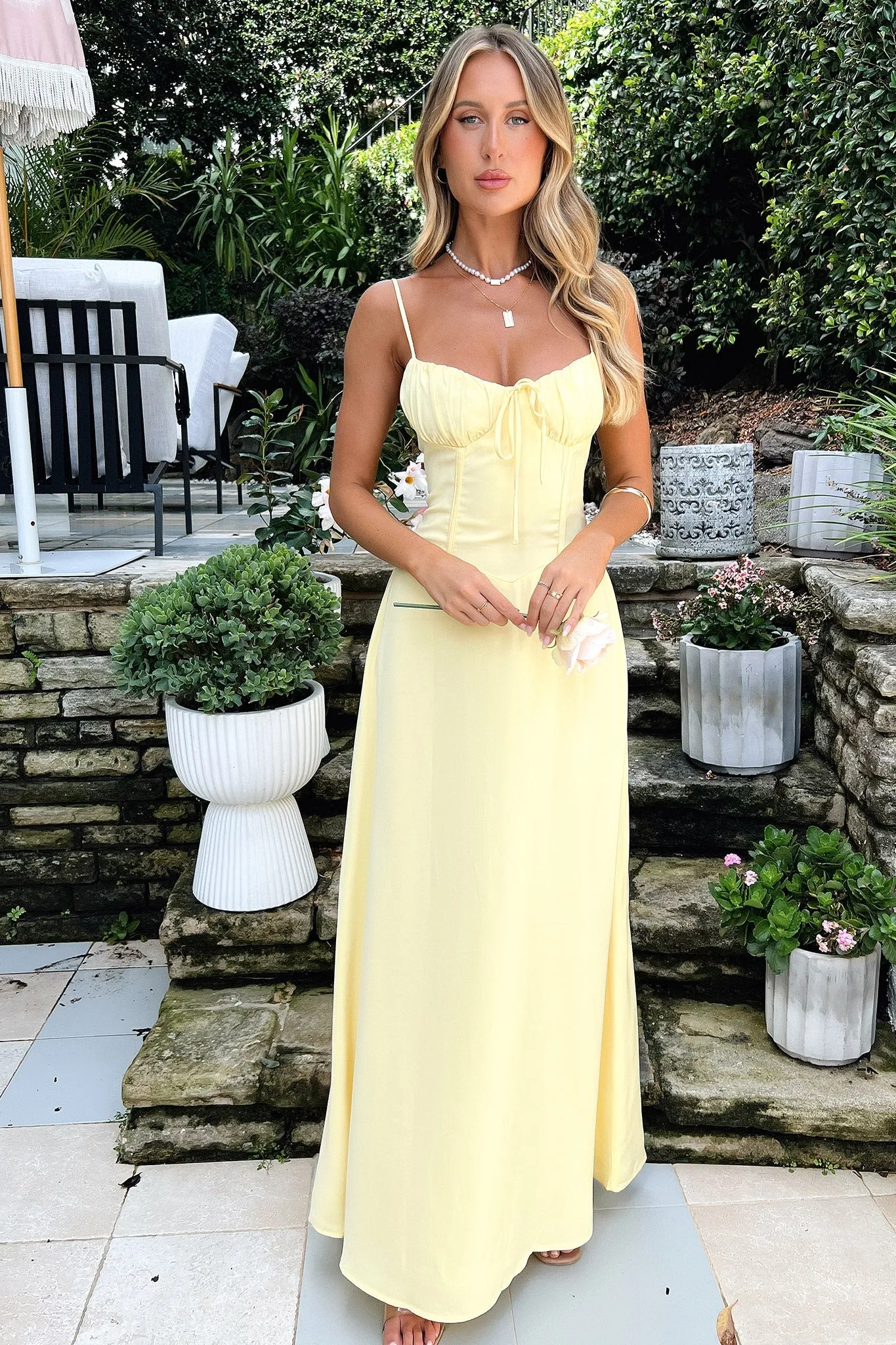 The Magdalena Maxi Dress is the perfect dress for any special event! It features a corset-style top with adjustable straps, a criss-cross tie-up back, and a cute bow detail in the centre. The double-lined material and invisible side zipper provide a comfortable and flattering fit. Complete the look with simple heels and gold jewellery!