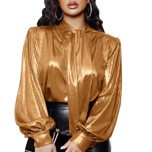 In a must-have solid metallic material and soft satin fabric, this bow tie shirt is so versatile. Team with high waist sequin trousers and barley there heels for a total lust worthy look.