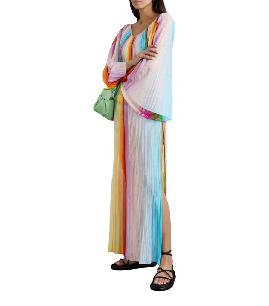 Detailed with metallic trim, wide sleeves and slits to the side.