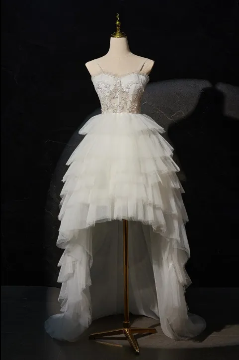 Introducing our New Arrival High Low Spaghetti Straps Homecoming Dresses, perfect for standing out at your next event. Made with high-quality materials, our dresses will make you feel confident and stylish. With its unique high-low design and delicate spaghetti straps, our dresses are a must-have for any fashion-forward individual.