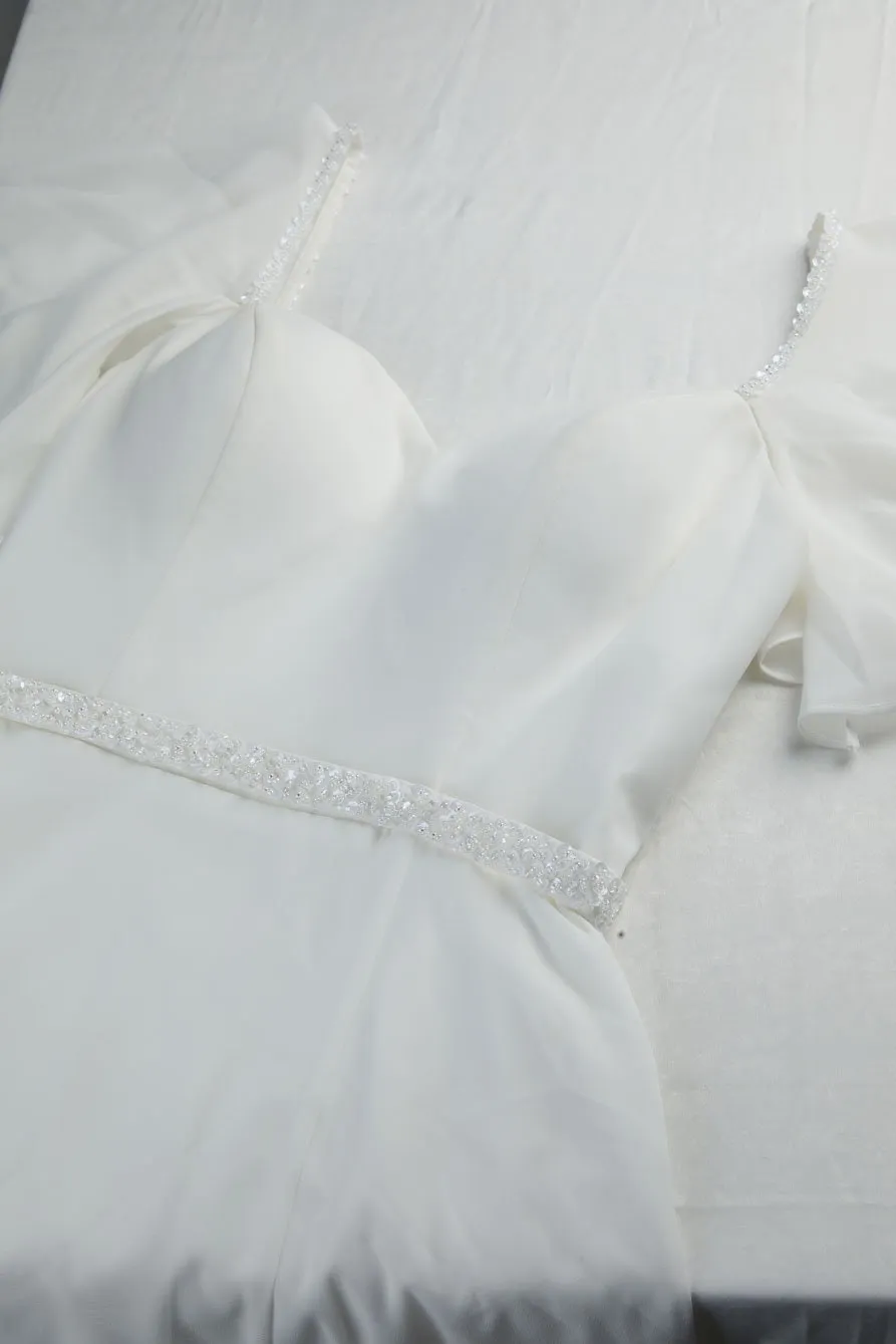 Short Flutter Sleeves Aline Wedding Dress Bridal Gown Sweetheart Neckline Chiffon Dress Flowy Light Weight Side Slit