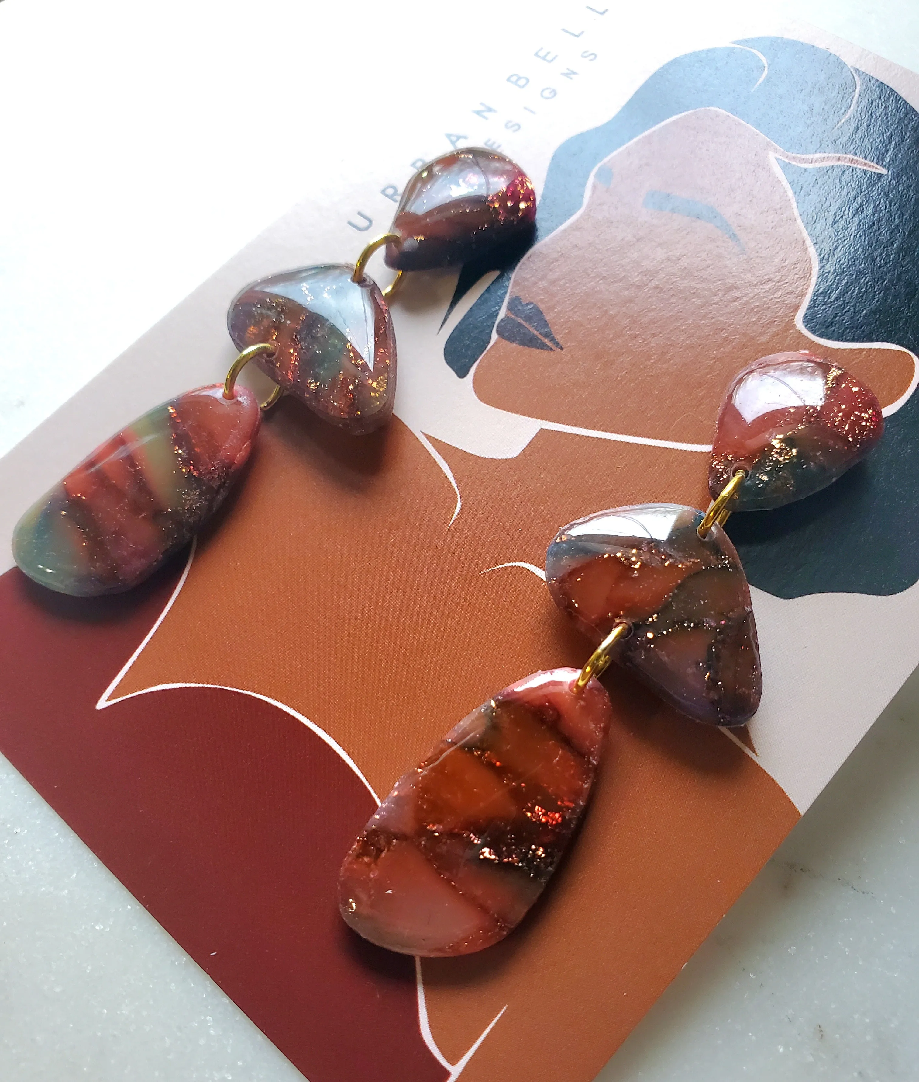 Add a touch of luxury to your look with these stunning PENELOPE Gemstone Inspired Pebble Statement Earrings. These earrings epitomize the beauty of nature, crafted with hues of red, maroon, and gold.