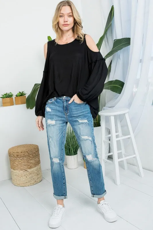 PLUS SOLID JERSEY COLD SHOULDER CASUAL BLOUSES TOP