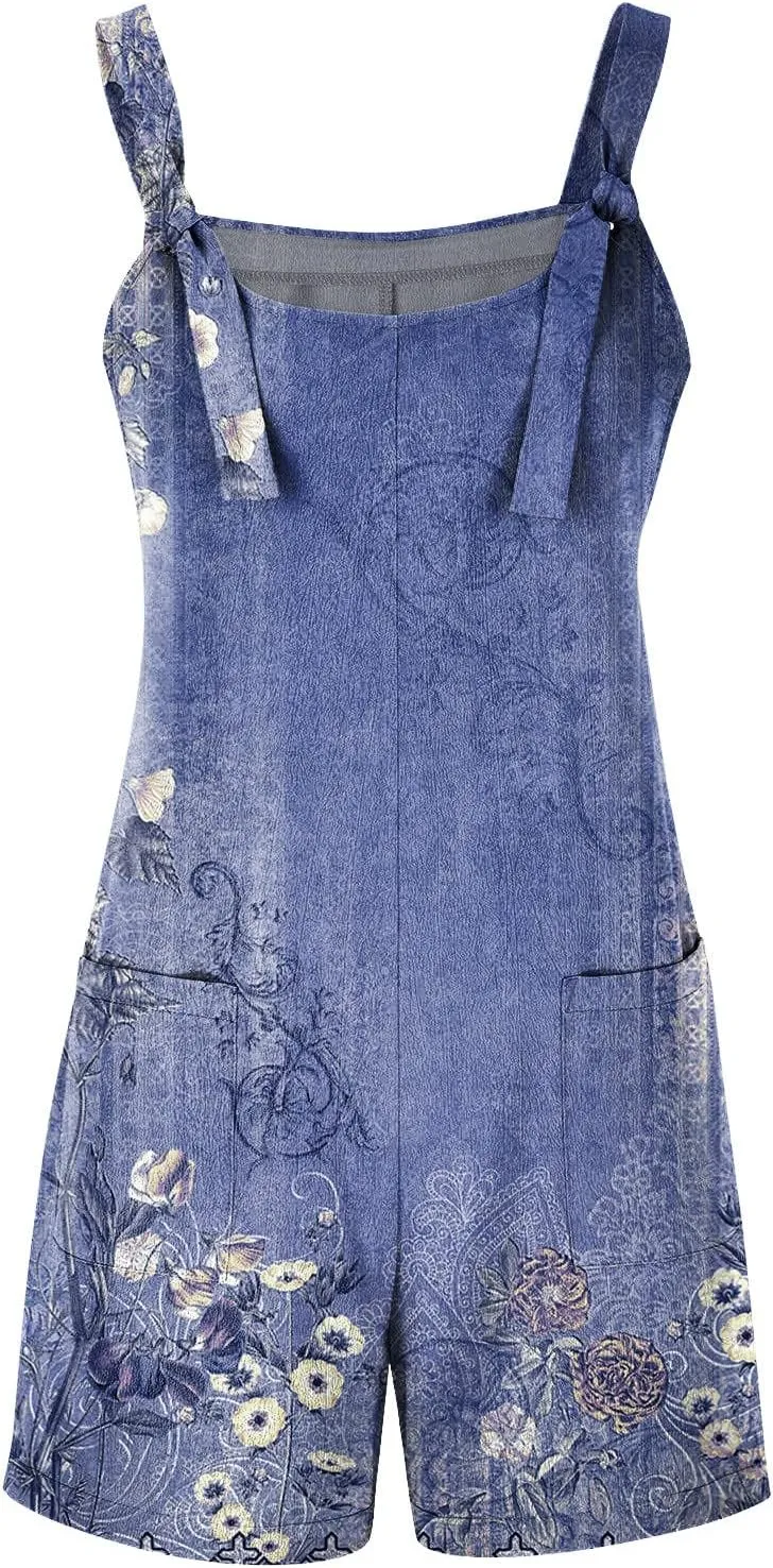 - jumpsuit floral romper cotton overalls for women loose fit adjustable strap loose bib rompers flower rompers for women shorts rompers for women casual summer overall shorts for women wide leg jumpsuits for women dressy summer romper for women