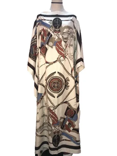 Fashion printed summer sexy silk kaftan dress boho long dress Full length Holiday women Beach caftan dress African dresses