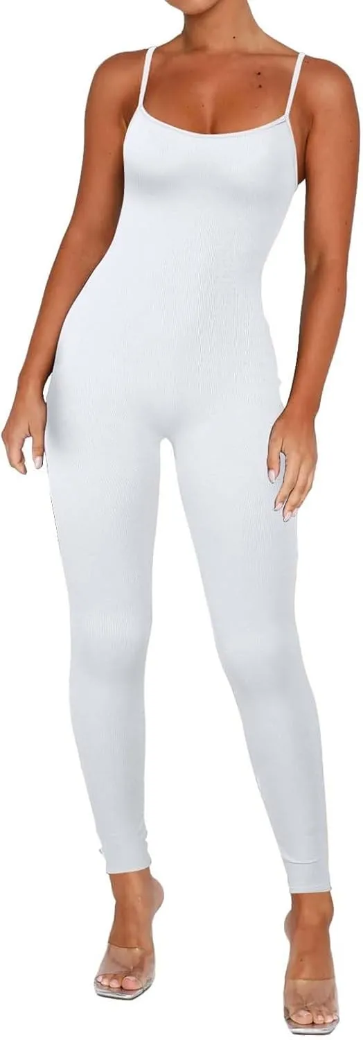 Women Workout Jumpsuit Yoga Ribbed Bodycon Spaghetti Strap Leggings Romper Jumpsuits for Women Summer