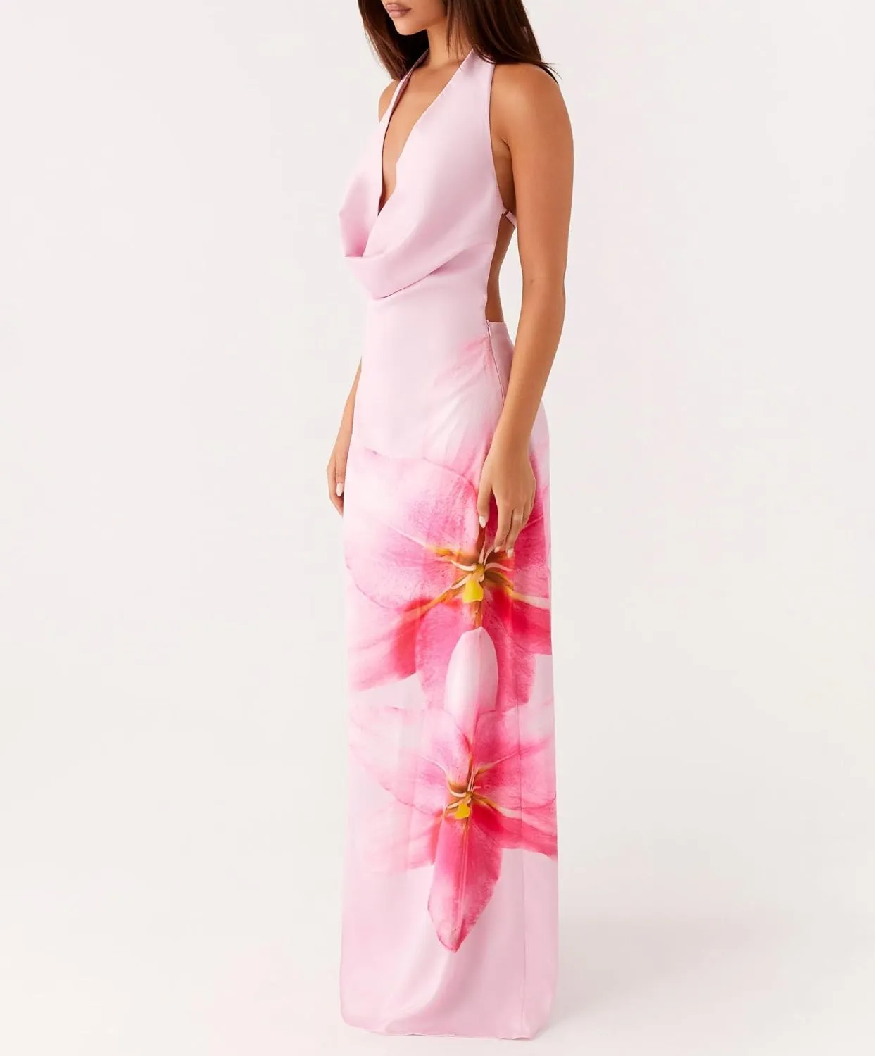 Women Y2K Floral Bodycon Maxi Dress Sleeveless Spaghetti Strap Low Cut Long Dress Boho Beachwear