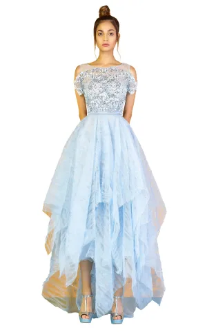 yellow pastiche organza singlet top and high waisted front slit pants.