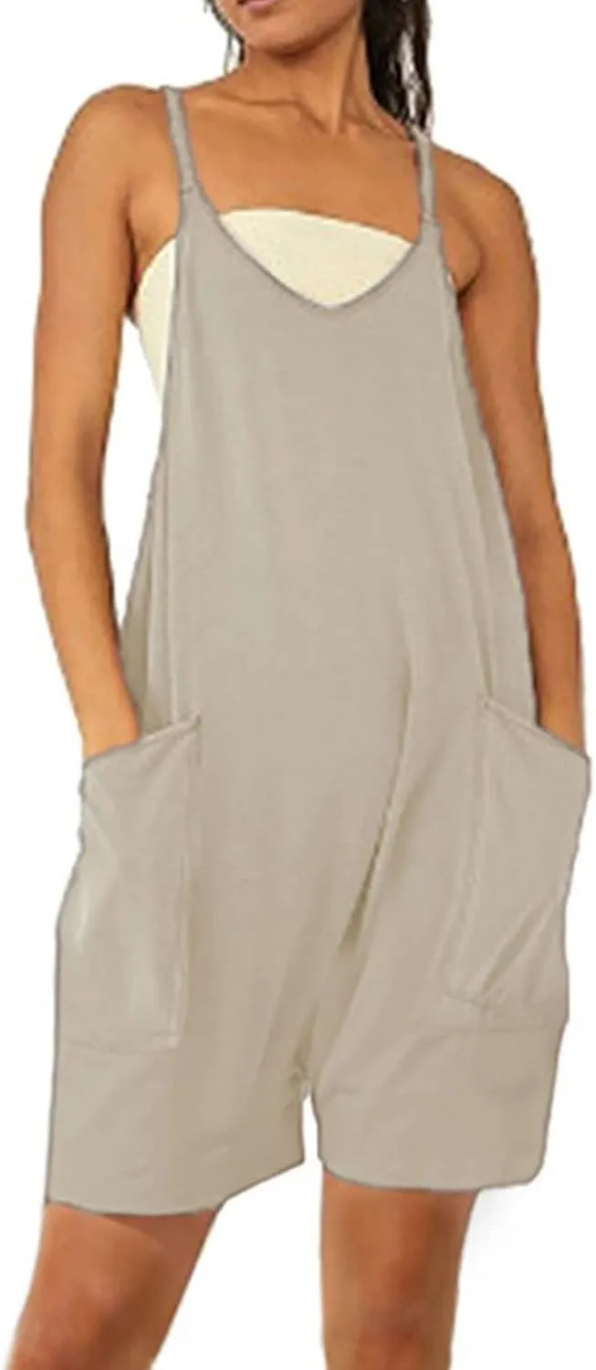 Summer Jumpsuits for Women Spaghetti Strap Rompers Loose Overalls Sleeveless Harem Long&Short Pants with Pockets